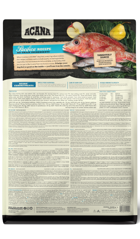 ACANA REGIONALS Pacifica to odzwierciedlenie bogactwa ryb, poławianych w zimnych, krystalicznych wodach kanadyjskiej części Pacyfiku. Przepełniona jest świeżymi, regionalnymi kanadyjskimi rybami, które poławiane są w sposób zrównoważony, w okolicach wyspy Vancouver.