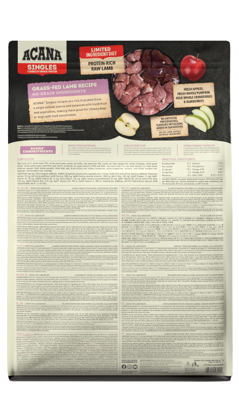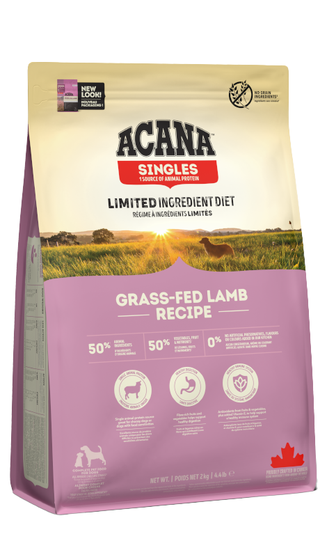 ACANA SINGLES Grass-Fed Lamb to karma monobiałkowa, która zawiera 50% jagnięciny, będącej źródłem łatwo przyswajalnego białka zwierzęcego. Idealne rozwiązanie dla psów wrażliwych wszystkich ras, w każdym wieku.