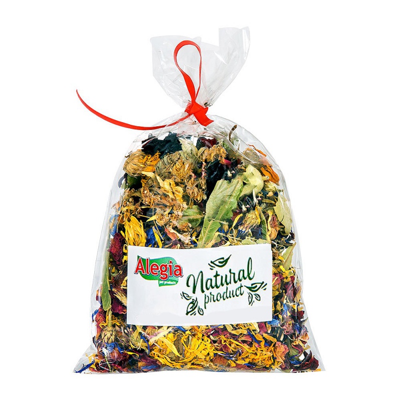 Alegia Kwiaty i Owady dla Agamy 40g to specjalnie skomponowana mieszanka suszonych kwiatów z dodatkiem larw mącznika oraz chipsów marchewki, która zapewnia naturalne witaminy oraz minerały. Mieszanka zawiera między innymi kwiat nagietka, który wykazuję działanie przeciwzapalne, rozkurczowe oraz przeciwgrzybicznie.