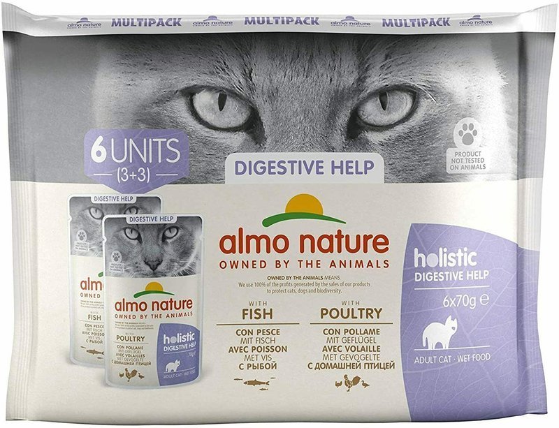 Holistic Digestive Help Dry to kompletna karma pielęgnacyjna dla dorosłych kotów, skomponowana z prebiotykami, które przyczyniają się do zdrowia jelit. Receptury Holistycznej Pomocy Trawiennej są wzbogacone witaminami i przygotowywane bez barwników spożywczych i chemicznych konserwantów. Receptury mokrej karmy zapewniają naturalne nawilżenie i są idealne dla kotów z wrażliwymi jelitami. Świeże mięso lub świeże ryby to główne składniki gamy Holistic, które wraz ze specjalną mieszanką zbóż gwarantują posiłek spełniający wszystkie potrzeby żywieniowe. Opakowanie zbiorcze Holistic Digestive Help zawiera łącznie 6 saszetek z 2 różnymi przepisami.