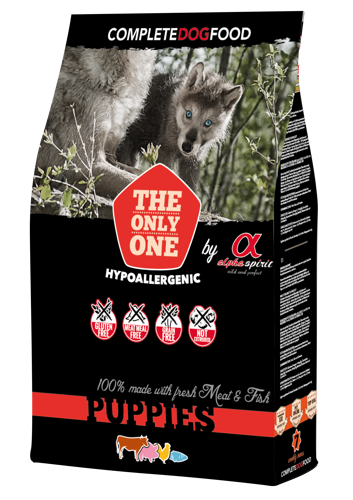Karma Alpha Spirit Puppies to smakowita karma pełnoporcjowa dla Twojego szczenięcia i młodego psa każdej rasy, idealna na etapie odkrywania świata przez małego czworonoga. Receptura jest dopasowana do naturalnych zachowań żywieniowych gatunku. Zawiera 100% naturalnych składników, w tym dużą ilość świeżego mięsa i świeżej ryby. Karma jest produkowana bez zbóż, a ponadto na jej korzyść przemawia doskonała przyswajalność i wysoka akceptacja. Podczas produkcji świeże mięso i ryba nie są ekstrudowane, tylko poddawane obróbce za pomocą opatentowanej technologii Tenderize. Metoda ta przypomina tłoczenie na zimno i poprawia przyswajalność zawartych w karmie składników odżywczych.