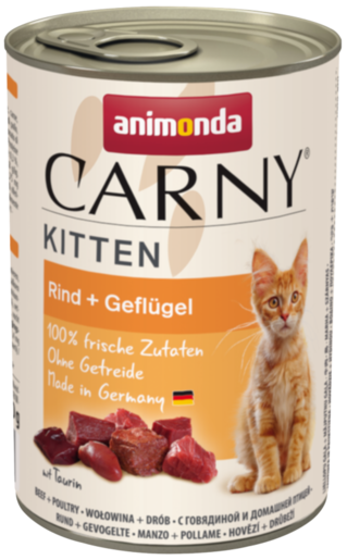 Animonda Carny Kitten to pełnowartościowy, kompletny posiłek dla kociąt i młodych kotów, składający się z czystego mięsa najwyższej jakości.