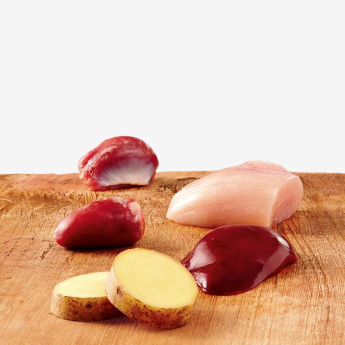 - 53% Kurczak (żołądki, serca, wątroba, szyje)