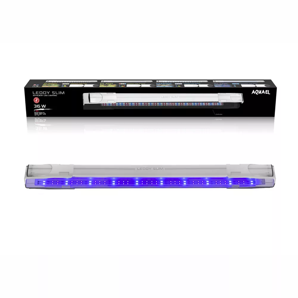 Lampa ledowa LEDDY SLIM 32W ACTINIC jest przeznaczona do oświetlania morskich zbiorników otwartych o długości od 80 do 107 cm. Zawiera starannie dobrane diody LED, które emitują tak zwane światło aktyniczne. Zapewnia idealną iluminację akwarium gwarantując doskonałe warunki do życia dla jego mieszkańców oraz wyjątkowy efekt wizualny. Jej płaski, futurystyczny kształt i modny, biały kolor sprawiają że doskonale komponuje się z nowoczesnymi zbiornikami akwariowymi i świetnie wygląda w każdym wnętrzu. Poza tym jest uniwersalna – rozsuwane wsporniki umożliwiają jej instalowanie również na zbiornikach o niestandardowych rozmiarach.