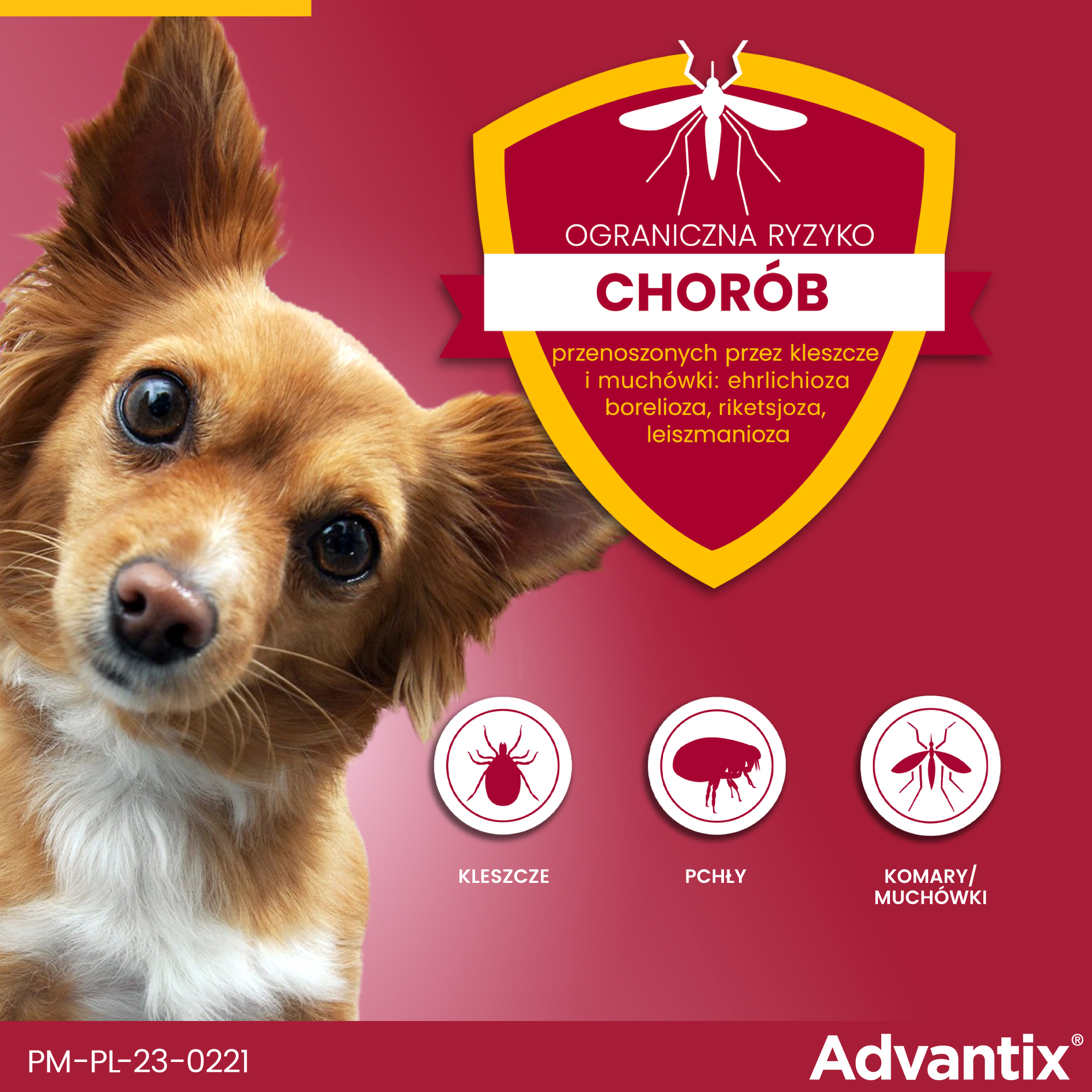 Bayer Advantix to preparat ochronny w kroplach dla psów powyżej 7 tygodnia życia i ras poniżej 4 kg, eliminujący kleszcze, pchły, wszy, wszoły.