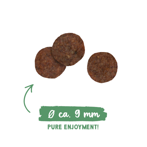 Karma dostarcza dobrze przyswajalnego białka zwierzęcego, które wspiera prawidłową pracę mięśni i układu odpornościowego. Dzięki zawartości ryżu i mąki ryżowej produkt jest łagodny dla żołądka i jelit, a cykoria i prebiotyki (MOS i β-glukany) pomagają utrzymać zdrową mikroflorę jelitową i wspierają naturalną odporność.