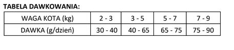 | Waga kota (kg) | Dzienna porcja (g/dzień) |