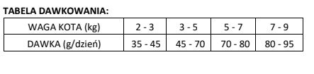 | Waga kota (kg) | Dzienna porcja (g/dzień) |
