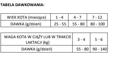| Wiek kota (miesiące) | Dzienna porcja (g/dzień) |