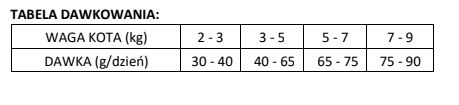 Waga kota (kg) Dzienna porcja (g/dzień)