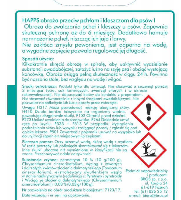 Bros Happs Obroża Przeciw Pchłom I Kleszczom Dla Dużych Psów 60cm – Sposób Użycia