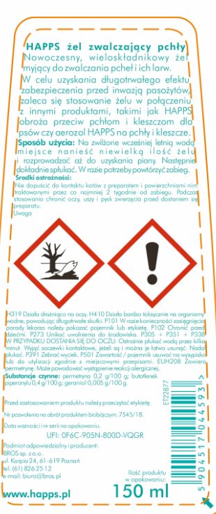 Bros Happs Żel Zwalczający Pchły 150ml – Dane Techniczne