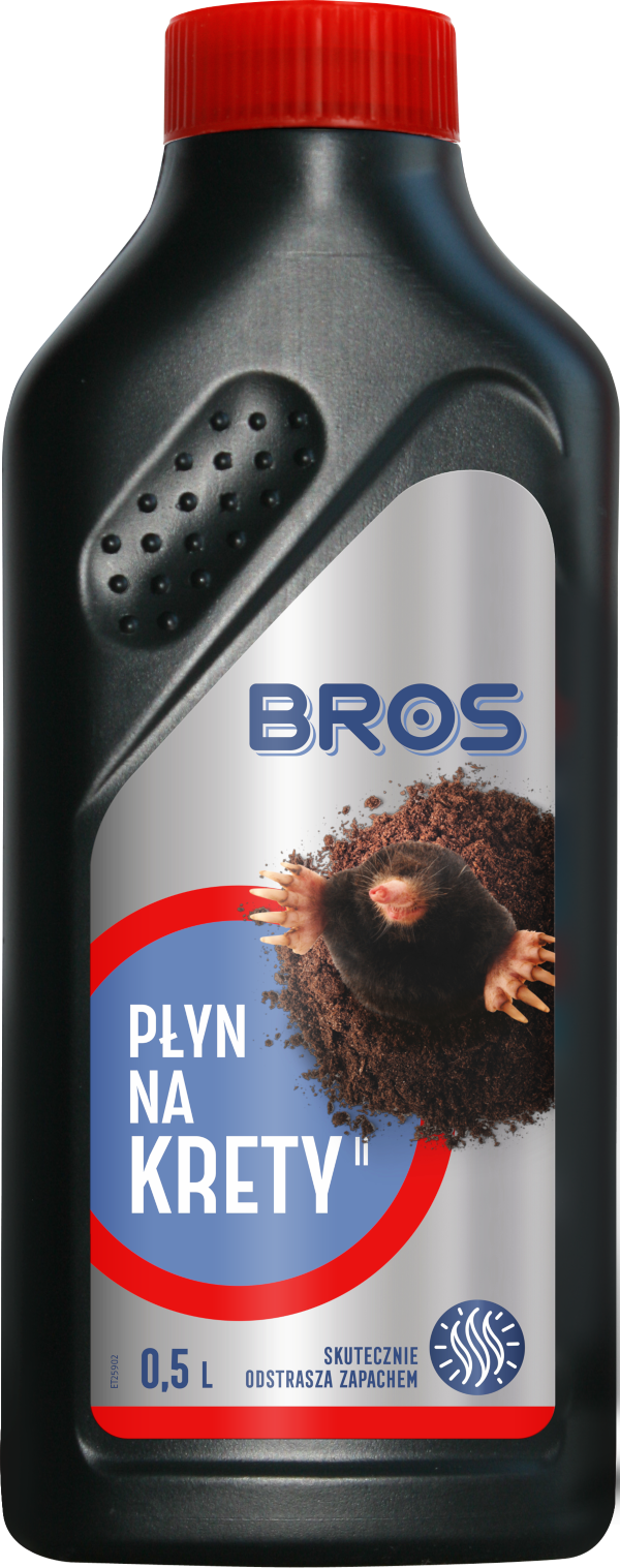 Płyn przeznaczony do odstraszania kretów z boisk, kortów tenisowych, pól golfowych i innych obiektów sportowych, ziemnych konstrukcji hydrotechnicznych i terenów lotnisk. Pojemność 1l.