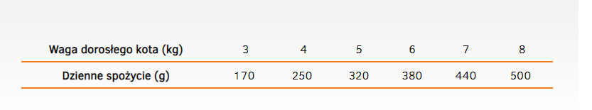 witamina A 800 j.m., witamina D3 200 j.m., witamina E 120 mg, witamina B1 1 mg, tauryna 800 mg, biotyna 0,4 mg, cynk 10 mg, mangan 2,4 mg, jod 0,6 mg, miedź 3,2 mg, żelazo 8 mg.