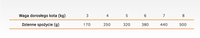witamina A 800 j.m., witamina D3 200 j.m., witamina E 120 mg, witamina B1 1 mg, tauryna 800 mg, biotyna 0,4 mg, cynk 10 mg, mangan 2,4 mg, jod 0,6 mg, miedź 3,2 mg, żelazo 8 mg, L-metionina 5000 mg.