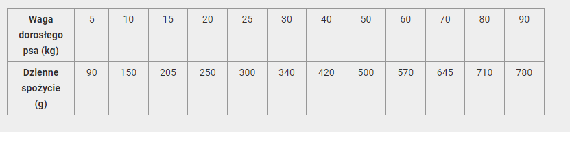 | Waga psa (kg) | 5 | 10 | 15 | 20 | 25 | 30 | 40 | 50 | 60 | 70 | 80 | 90 |