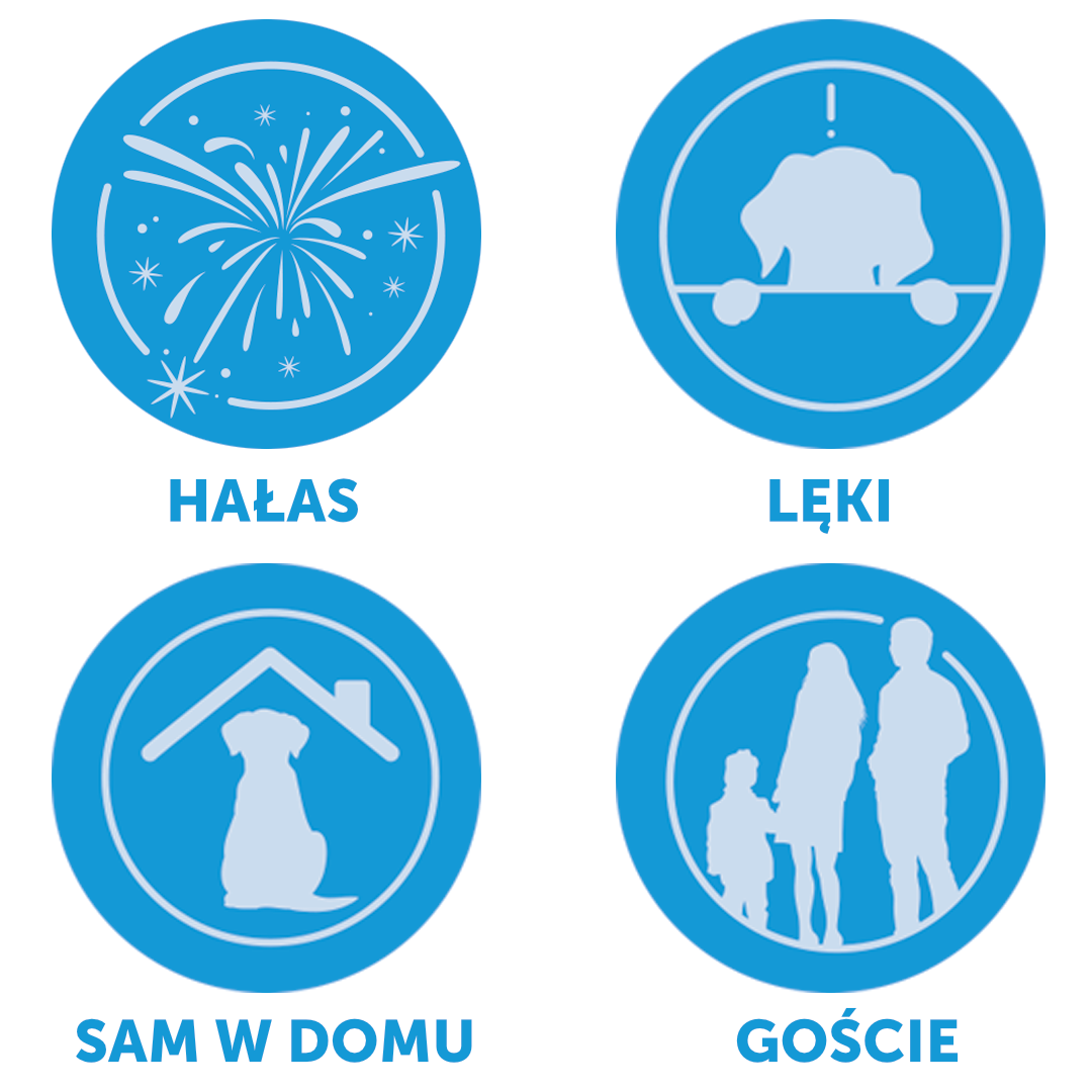Trudnych sytuacji typu: fajerwerki, głośne dźwięki, zostawanie samemu w domu, zostawanie w kenelu.