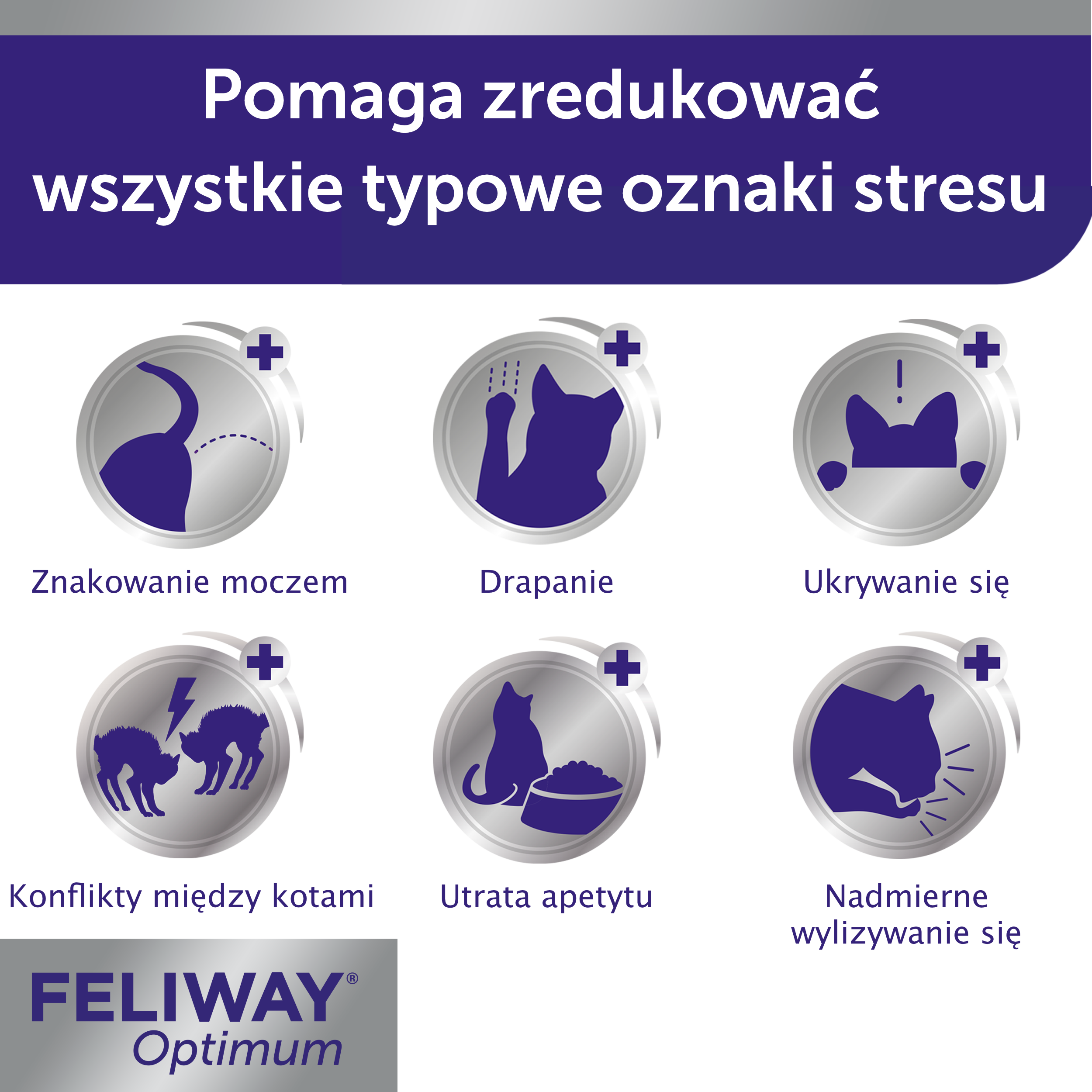 Feliway® Optimum dyfuzor antystresowy to innowacyjny produkt stworzony, by zmniejszyć stres u kotów w różnych sytuacjach, takich jak zmiany w otoczeniu, przeprowadzki czy konflikty między kotami. Zawiera unikalną kompozycję feromonów, które pomagają kotom poczuć się bezpieczniej i bardziej komfortowo. Jest to skuteczne narzędzie w walce ze stresem, ponieważ wspiera naturalne sygnały dobrej kondycji i dobrostanu wysyłane przez koty. Dyfuzor działa na koty, ale jest całkowicie bezwonny dla ludzi i innych zwierząt w domu.