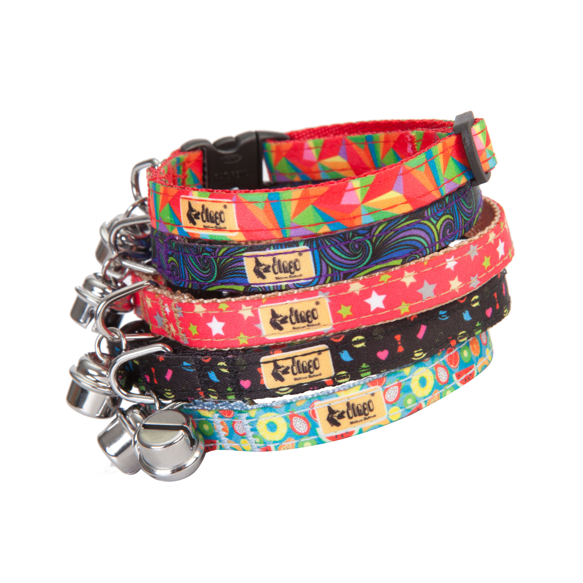 Wielokolorowe obroże w modne i wyraziste wzory są odporne na ścieranie.