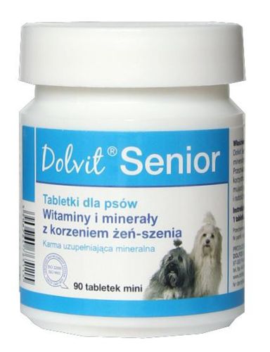 Dolvit Senior zawiera kompleksowy zestaw witamin i składników mineralnych, wzbogacony ekstraktem z korzenia żeń-szenia. Przeznaczony jest dla dojrzałych i starzejących się psów. Ułatwia osiągnięcie oraz utrzymanie dobrej kondycji. Zaleca się podawanie go również psom wyniszczonym, jak też w przypadkach żywienia źle zbilansowanymi pokarmami. W okresie rekonwalescencji (także po odrobaczeniach) skraca okres powrotu do zdrowia.