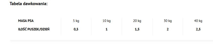 | Ilość puszek/dzień | 0,5 | 1 | 1,5 | 2 | 2,5 |