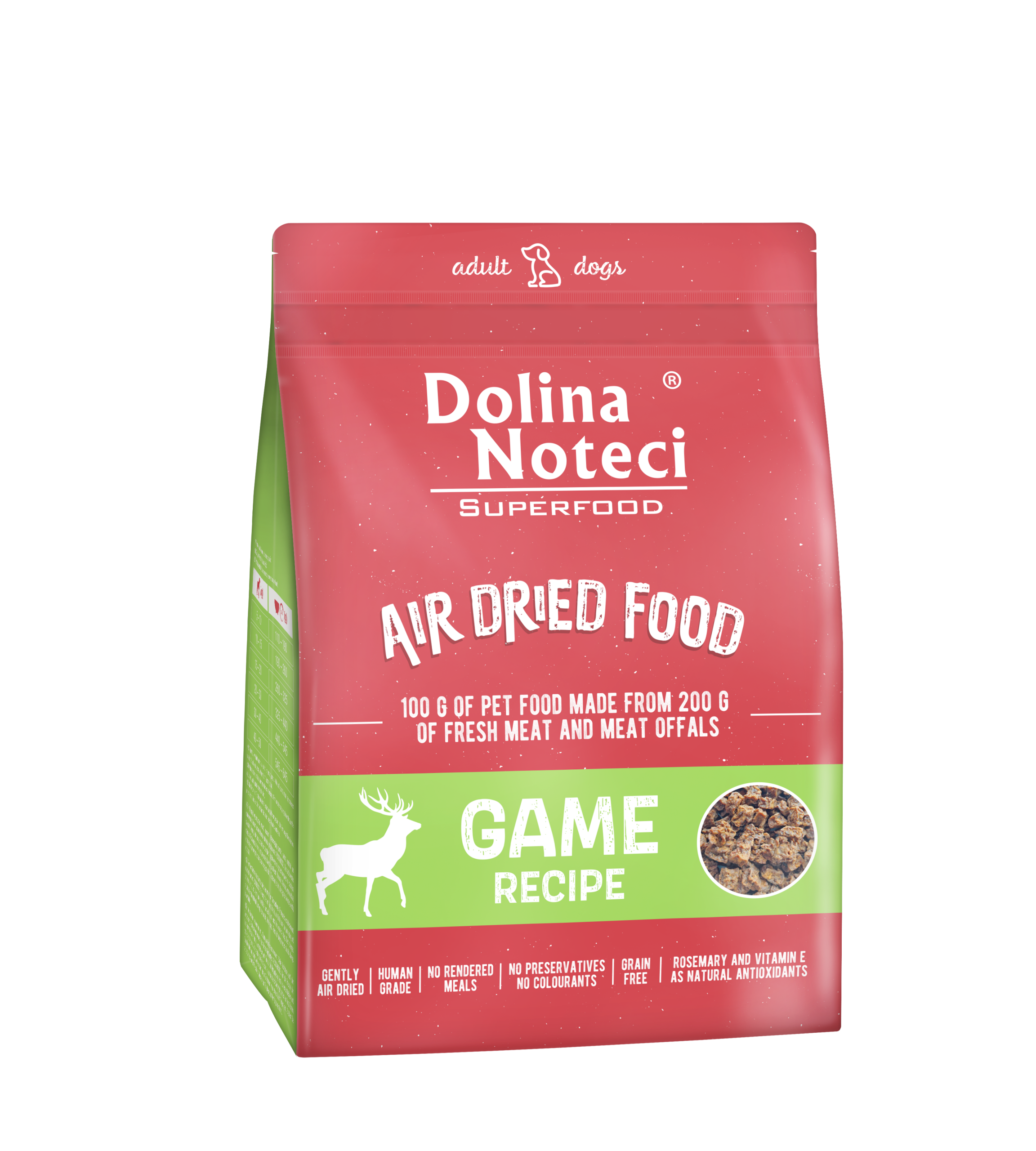 Dolina Noteci SUPERFOOD danie z dziczyzny to pełnowartościowa karma suszona przeznaczona dla dorosłych psów wszystkich ras, pokrywająca dzienne zapotrzebowanie na wszystkie składniki odżywcze.