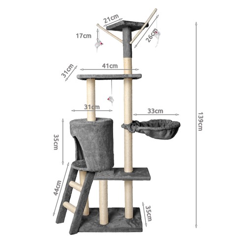 Wielofunkcyjne drzewko jest alternatywą dla kota, gdy ten zaczyna drapać meble, zasłony, itp. Wyposażony jest w kryjówki, gdzie nasz ulubieniec może się schować.