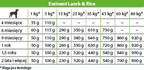EMINENT Lamb&Rice 26/14 to kompletna karma dla psów wszystkich ras od 4. miesiąca życia z jagnięciną i ryżem.