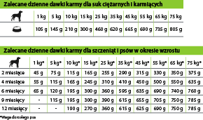 ZALECANE DZIENNE DAWKI KARMY DLA SUK CIĘŻARNYCH I KARMIĄCYCH