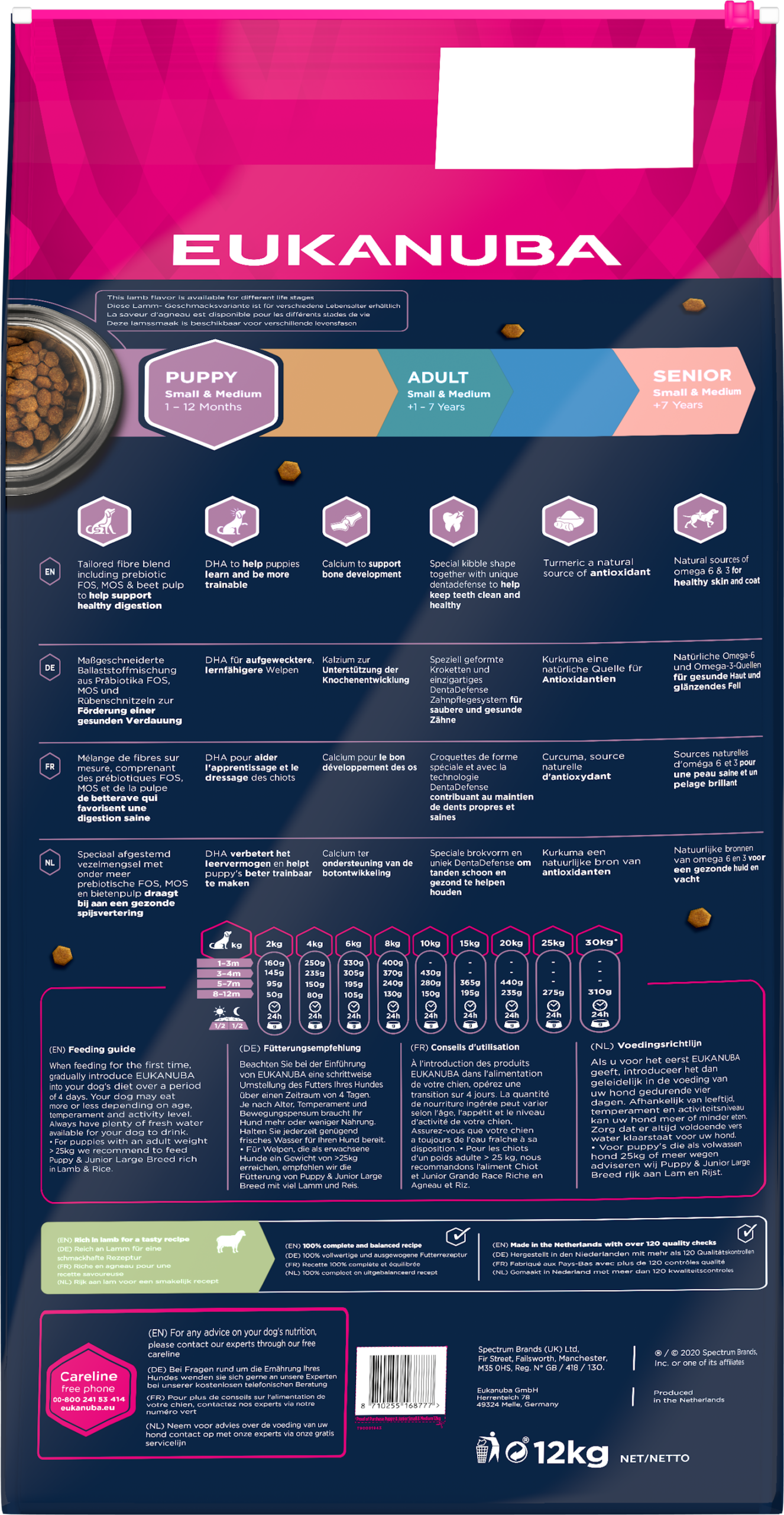 Eukanuba Puppy&Junior Small/Medium Lamb&Rice 12kg – Opis Produktu