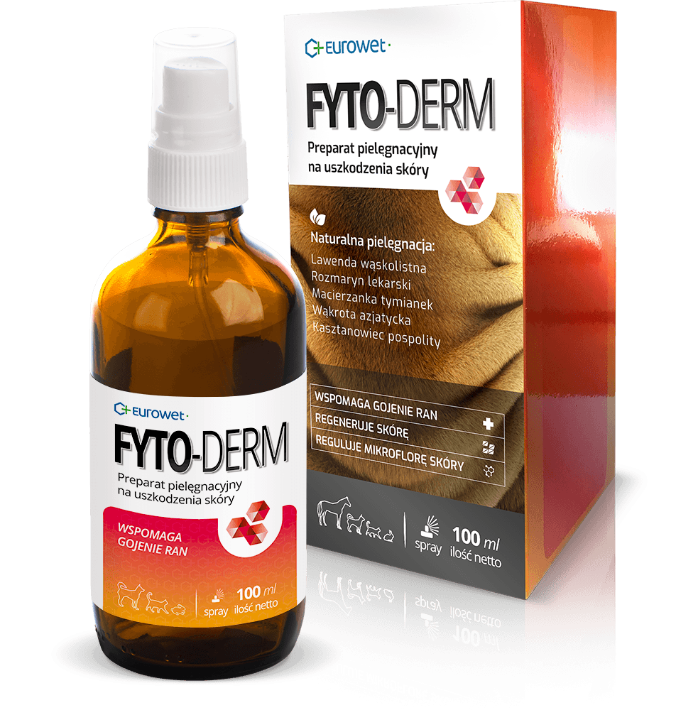 Fyto-Derm jest dermokosmetykiem weterynaryjnym do stosowania na uszkodzoną skórę psów, kotów i pozostałych zwierząt. Składniki preparatu wykazują działanie regulujące mikroflorę skóry oraz wpływają na jej odnowę. Charakterystyczny zapach preparatu zapobiega wylizywaniu miejsca uszkodzonej skóry przez zwierzęta.