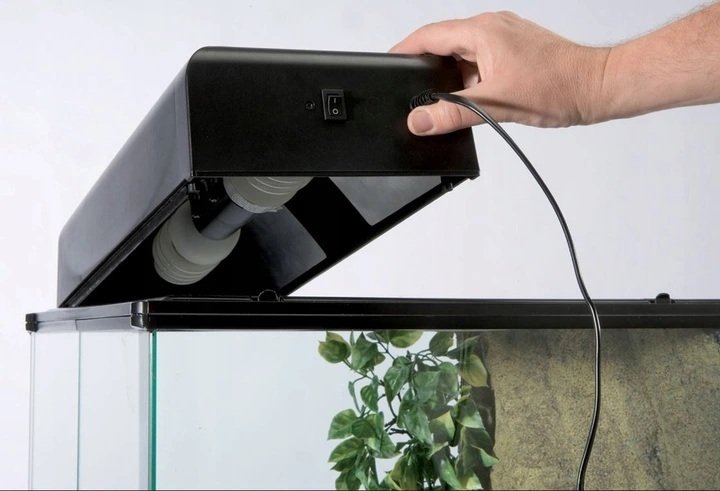 Ceramiczna oprawka wewnątrz pokrywy pozwala na montaż różnych świetlówek kompaktowych zapewniających promieniowanie ultrafioletowe lub żarówek grzewczych do podniesienia temperatury powietrza, żarówek nocnych czy dziennych.