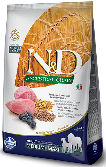 Farmina N&D Ancestral Grain Canine Adult Medium&Maxi Lamb&Blueberry 12kg – Opis Produktu