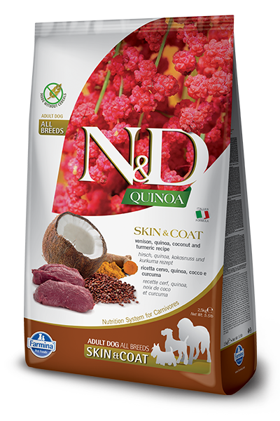 Farmina N&D Quinoa Canine Venison Skin&Coat 2,5kg – Opis Produktu