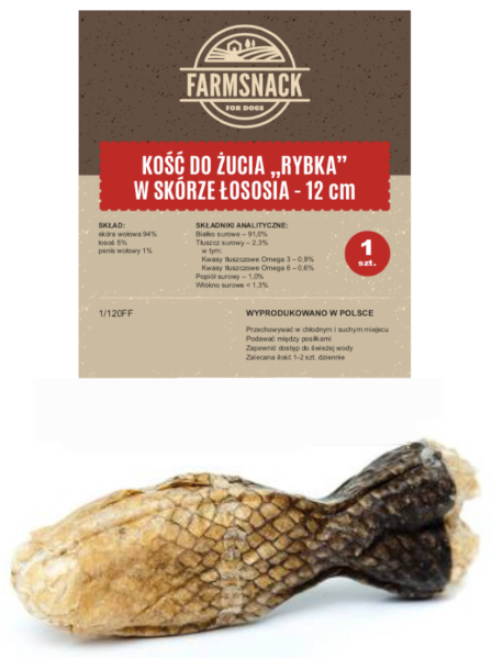 FarmSnack Kość Do Żucia Rybka W Skórze Łososia 12cm – Opis Produktu