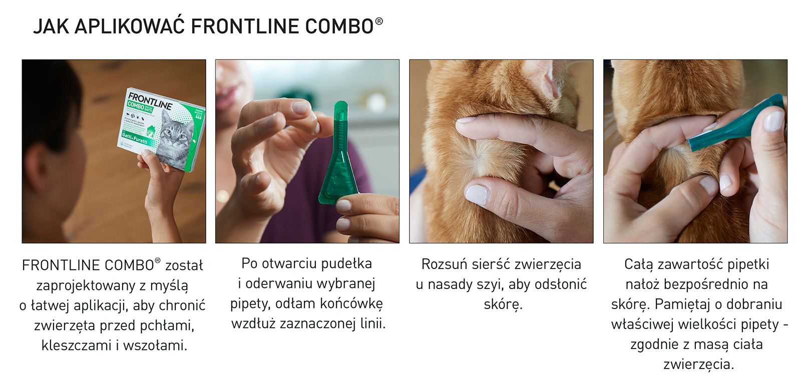 - Nanieś FRONTLINE Spot On bezpośrednio na skórę