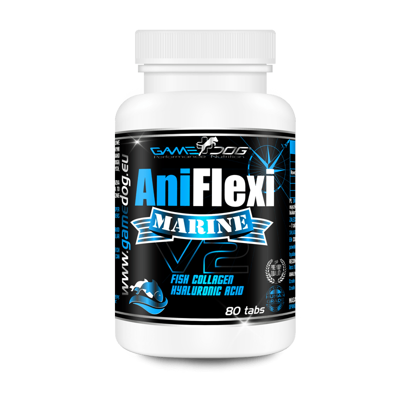 Game Dog AniFlexi Marine V2 80 tabletek to zaawansowany suplement diety wspierający prawidłowe funkcjonowanie układu ruchu u psów. Preparat działa przeciwzapalnie i przeciwbólowo, poprawia elastyczność oraz ruchomość stawów, a także wspomaga regenerację tkanki chrzęstnej i kostnej. Regularne stosowanie spowalnia postęp chorób zwyrodnieniowych, odżywia stawy i redukuje dolegliwości bólowe. Produkt polecany jest psom z problemami stawowymi, w okresie rekonwalescencji, a także młodym zwierzętom w fazie intensywnego wzrostu.