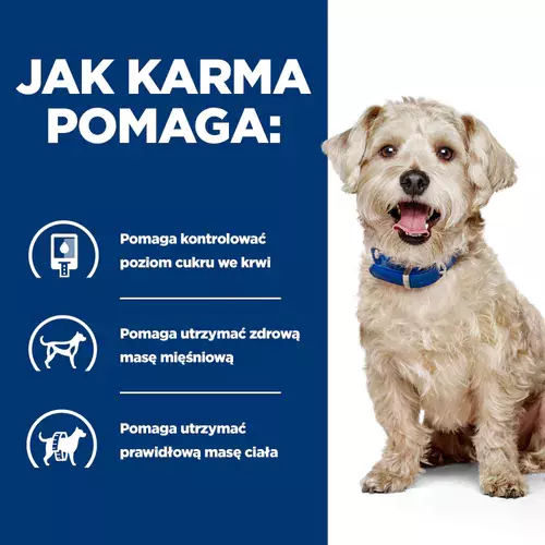 Hill’s Prescription Diet w/d zaspokaja wszystkie potrzeby żywieniowe Twojego psa. Skontaktuj się z lekarzem weterynarii, aby uzyskać więcej informacji na temat tego, jak karmy Prescription Diet mogą pomagać Twojemu psu cieszyć się aktywnym życiem w zdrowiu.