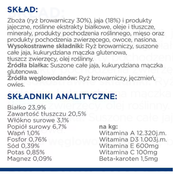 - Witamina A (34 610 IU/kg)