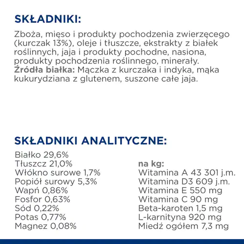 L-karnityna dodana – wspomaga metabolizm tłuszczu i ogranicza stłuszczenie wątroby.