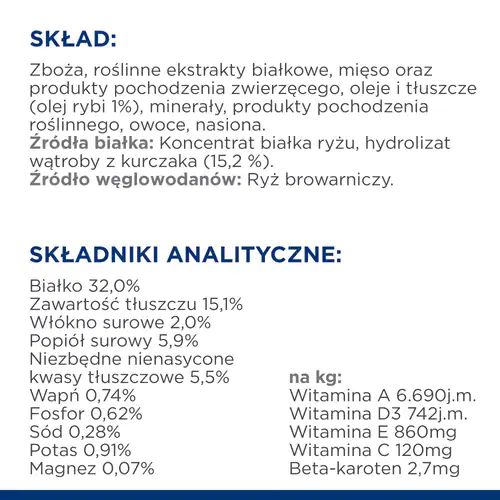Wątroba kurczaka jedyne źródło białka – wysoko hydrolizowana i zmniejszona ilość białka pomaga ograniczyć reakcje niepożądane na pokarm.