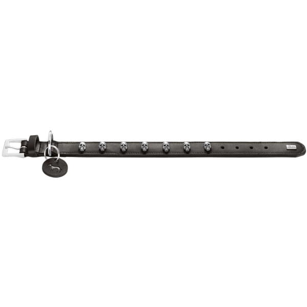 Ozdobą tej kolekcji są starannie odlewane czaszki, które nadają obroży charakteru. Bezstopniowa regulacja pozwala na precyzyjne dopasowanie obroży do psa, zapewniając komfort użytkowania. Wzmocnienie między warstwami skóry ogranicza ryzyko poluzowania się zdobień, co zwiększa jej trwałość.