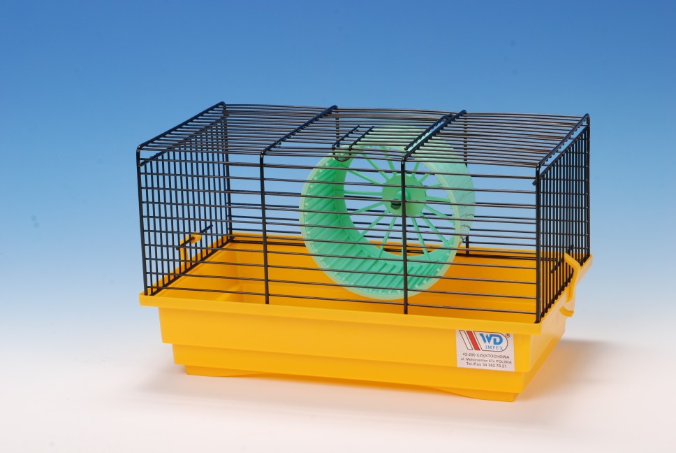 Klatka dla małych gryzoni (chomik, mysz, szczur). Dzięki odpinanej kuwecie klatkę łatwiej wysprzątać. Elementy klatki wykonane są z nietoksycznego plastiku. Górna część klatki wykonana jest z metalowych prętów pokrytych nietoksyczną farbą.