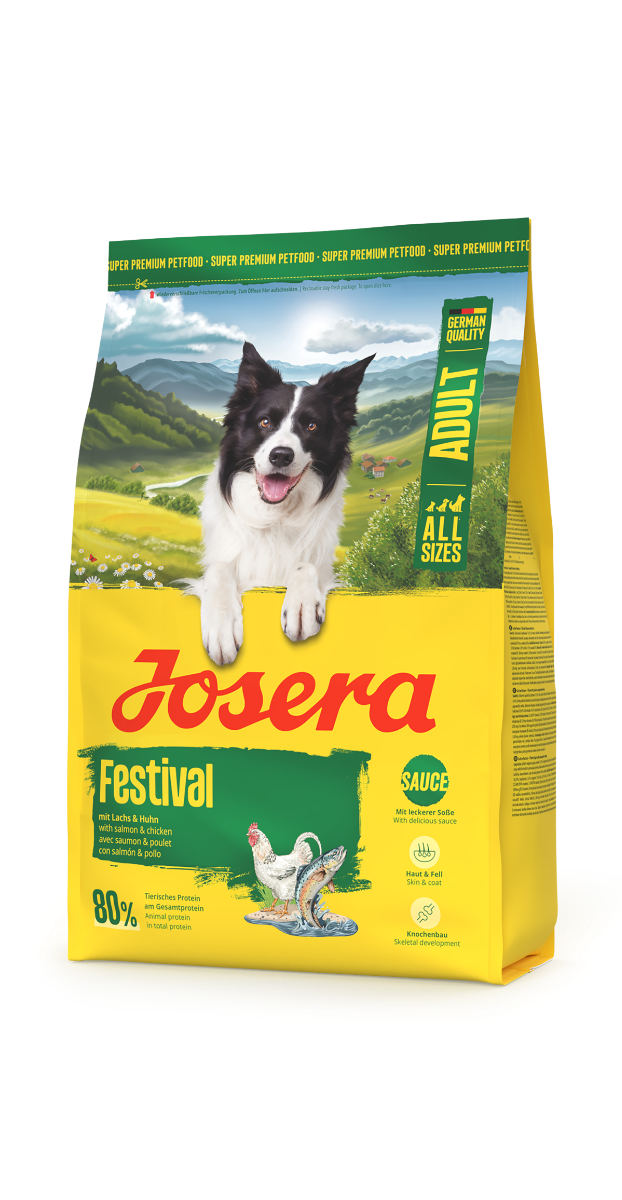 Wybredny pies to duża zagwozdka dla właściciela. Z pomocą przychodzi wysokiej jakości karma Josera Festival, w skład której wchodzą składniki pozwalające na zaspokojenie zachcianek nawet najwybredniejszych pupili. Karma ta została wyprodukowana w taki sposób, że może być podawana na sucho jak i na mokro po uprzednim namoczeniu w niewielkiej ilości wody. Z racji wielkości granulek karma podawana w formie suchej polecana psom większych ras. Karma podawana w formie suchej pomaga również w pielęgnacji zębów. Karma dla psów dorosłych.