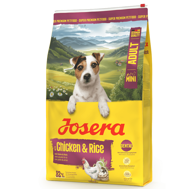 suszone białko drobiowe 31,0 % (w tym kurczak 40,0 %), kukurydza pełnoziarnista, ryż 15 %, tłuszcz drobiowy, wysłodki buraczane, hydrolizowane białko drobiowe, minerały (trójpolifosforan sodu 0,35 %), hydrolizowane białko zwierzęce, drożdże, suszony korzeń cykorii (naturalne źródło inuliny).