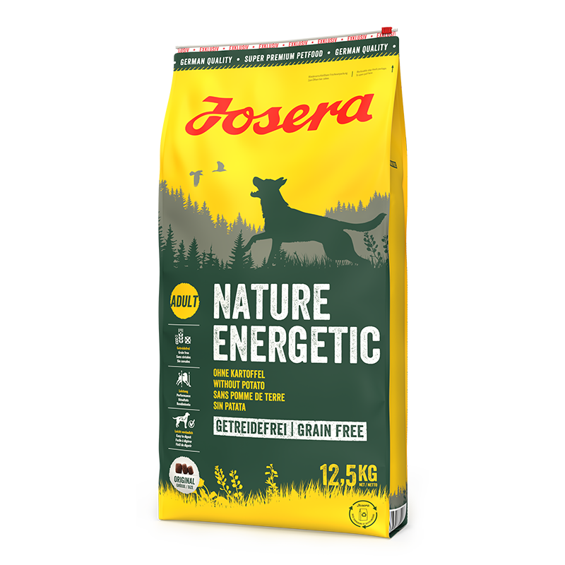 Josera Nature Energetic Grain Free to pełnoporcjowa karma dla dorosłych psów, stworzona specjalnie dla zwierząt o zwiększonej aktywności fizycznej i umysłowej. Formuła karmy jest bezzbożowa, bez dodatku ziemniaków, co czyni ją odpowiednią dla psów z wrażliwym układem pokarmowym lub nietolerancją zbóż. Karma zawiera wysokiej jakości składniki białkowe i tłuszczowe, zapewniając podwyższoną wartość energetyczną niezbędną podczas wzmożonego wysiłku.