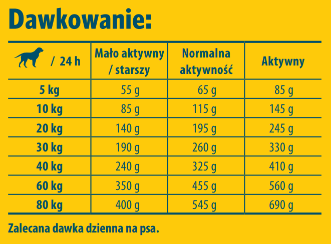 | Waga psa | Mała aktywność | Normalna aktywność | Wysoka aktywność |