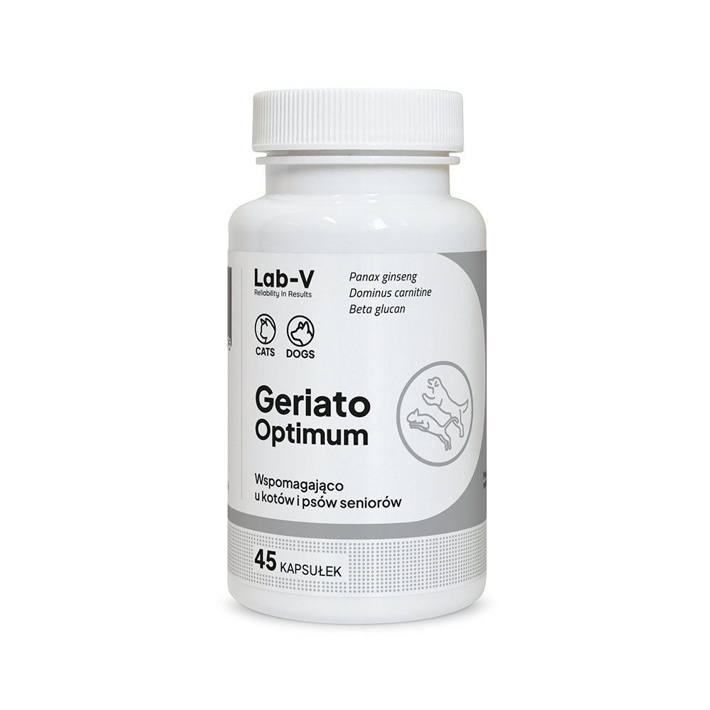 Geriato Optimum polecany jest zwierzętom starszym, które potrzebują wsparcia w utrzymaniu aktywności oraz zdrowia. Dzięki synergicznemu działaniu składników, preparat pomaga w regeneracji chrząstki stawowej, utrzymaniu masy mięśniowej, a także zwiększa witalność. Silne działanie antyoksydacyjne wspiera organizm w walce ze stresem oksydacyjnym.