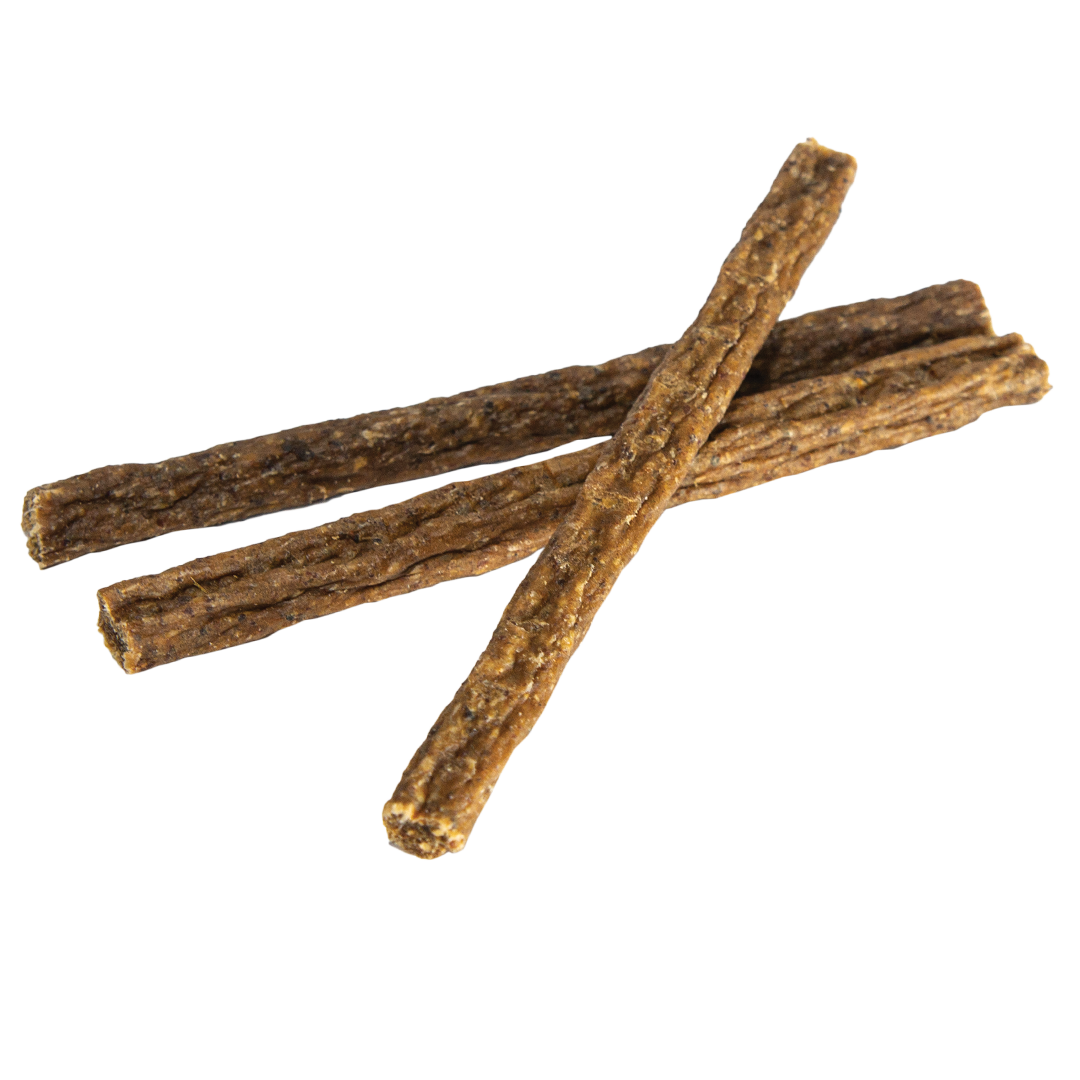 Dodatek suszonego jabłka (3,6%) i buraka czerwonego (0,8%) wspiera pracę układu trawiennego i wspomaga funkcjonowanie jelit. Pałeczki łatwo dzielą się na mniejsze kawałki, dlatego świetnie sprawdzają się jako nagroda podczas treningu.