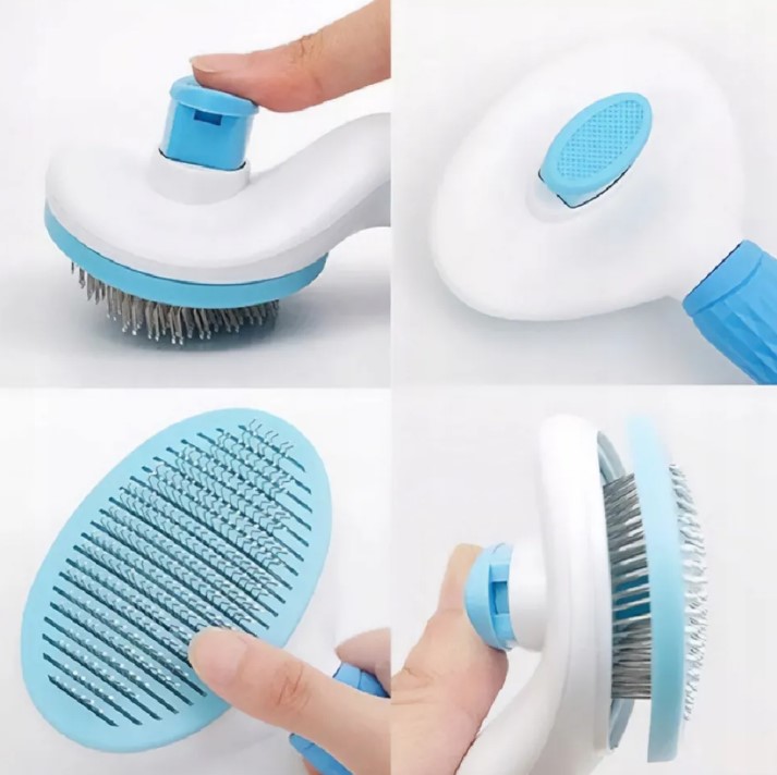 Szczotka posiada oryginalny system czyszczenia – wystarczy nacisnąć przycisk, a sierść zostanie usunięta z igieł.